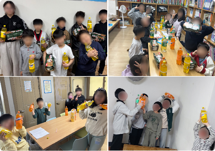 친구들과 함께 나누어 마시며 웃고 떠드는 시간, 그 순간은 아이들에게 작은 쉼이자 즐거운 추억으로 남습니다.