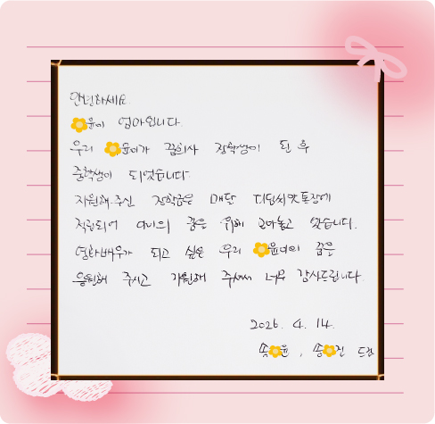 송O윤(학생), 송O진(어머니) 드림